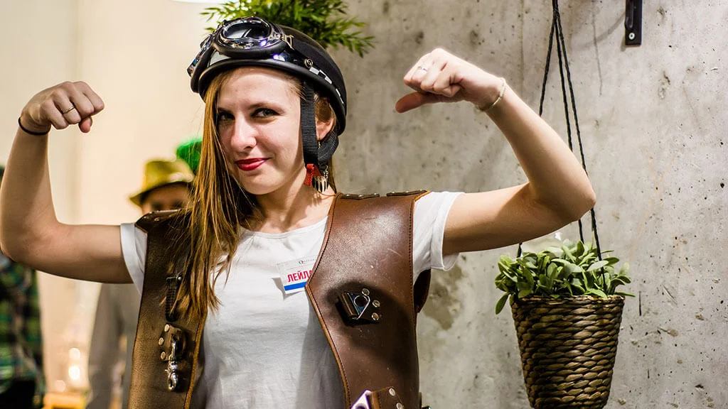 Любая неформальная одежда, если есть, то можно надеть мужчинам и женщинам: кожаные куртки-«косухи», кожаные штаны, джинсы, тёмные футболки, тёмные очки, цепи. Для девушек подойдут также: мини-юбки, яркие футболки